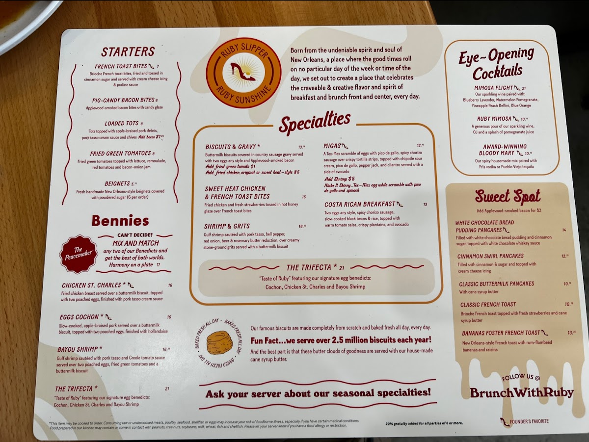 The drinks at Ruby Slipper enhance the experience further, with their ruby mimosa and mimosa flight stealing the show. These refreshing beverages pair perfectly with a hearty brunch, and it’s easy to see why they have become a favorite among guests.