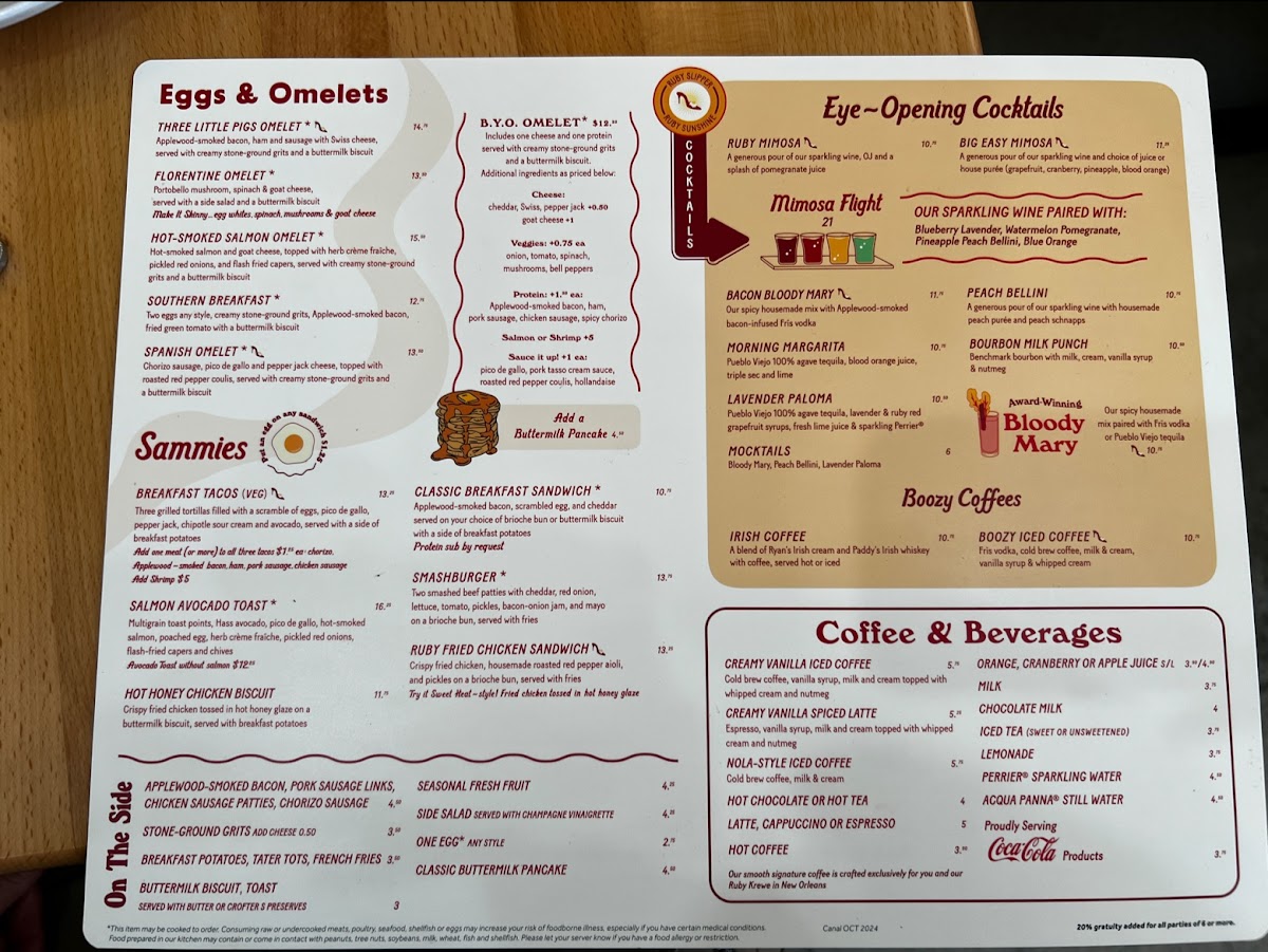 Welcome to Ruby Slipper - 1001 Canal St, a vibrant breakfast destination in the heart of New Orleans. This bustling restaurant offers a menu that celebrates Southern flavors with a unique twist. Diners rave about the delectable breakfast tacos, which can be enjoyed in a vegetarian option, and the irresistible fried chicken biscuit sandwich that has garnered a loyal following.